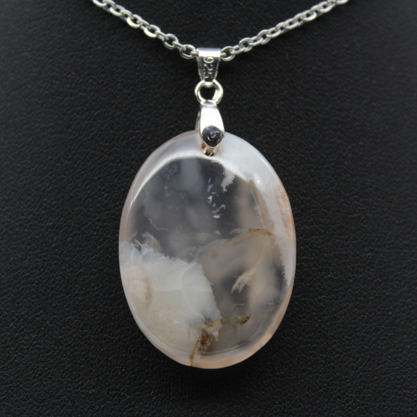 De roestvrijstalen ketting en de bevestigingsring van 925 zilver zijn inbegrepen.