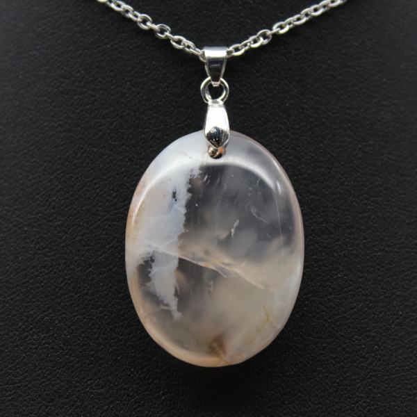 Agaat is een microkristallijne variant van kwarts, een mineraal bestaande uit silica, dat zich meestal vormt in holtes van vulkanisch gesteente, waar oplossingen die rijk zijn aan silica in opeenvolgende lagen worden afgezet. Deze afzettingen, vaak van verschillende kleuren, creëren de karakteristieke patronen van agaat, variërend van parallelle banden tot dendritische vormen. De diversiteit aan kleuren is te danken aan de aanwezigheid van onzuiverheden zoals ijzeroxiden, mangaan of andere sporenelementen.