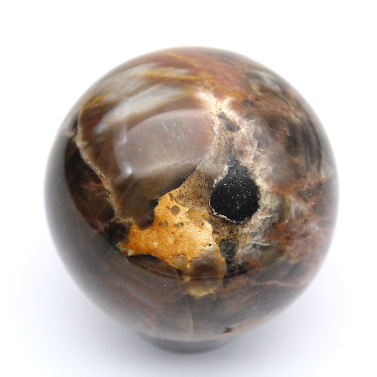 Zwarte maansteenbollen, ook wel microklien genoemd. De kleur is zwart, bruin tot donkergrijs, het heeft een parelmoerglans en een glazige textuur. Deze steen onderscheidt zich door zijn glinsterende glans, die doet denken aan een maan midden in de nacht. Ideaal voor verzamelaars van mineralen en liefhebbers van geologie.